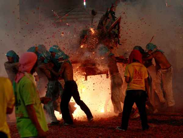 ก็คือทหารบ้าจี้ืั้ที่ว่ามา มีพันก็ยิงพัน มีหมื่นก็ยิงทั้งหมื่น สุดท้ายก็เป็นหน้าที่ของ ผู้บังคับกองพัน กองพล ที่ว่ามา ประทัดนี่จะเล่นกันอยู่หลายเทศกาลด้วยกัน อันได้แก่ ตรุษจีน,เชี้ยงเหมียง,ตุ๊งเจียด และก็ซิดไจ๊ จะเห็นว่าแต่ละเจียด ใช้ประทัดกัน ไม่ใช่น้อยเลย โดยเฉพาะ กินเจกิ้วเงี้ยดหวองไจ๊ จุดกันจนกระดาษบนท้องถนนหนาเป็นนิ้ว กว่านิ้ว ที่โด่งดังที่สุดคือที่จังหวัดภูเก็ต... สมัยก่อน ตอนไหงยังเด็ก วันไหว้พระจันทร์ จุงชิ้วเจียด ก็มีจุดกัน ทั้งประทัด ตะไล ปลาดุก ปลาช่อน แต่ตอนนี้ไม่มีแล้ว แต่ลอยกระทงเดือน 12 มีเล่นเหมือนกัน แต่ไม่มากเท่าครับ.