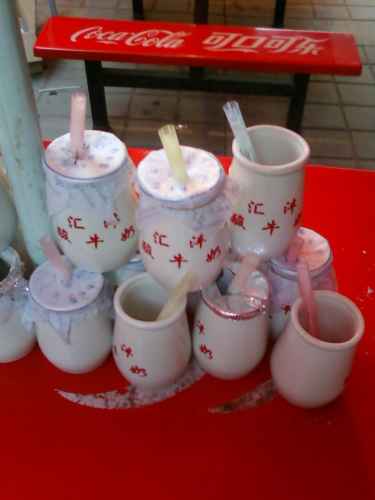 ภาพที่เห็นอยู่นี้ คือ "โยเกิร์ตซีอาน" ซึ่งวางขายอยู่บนฟุตบาทข้างโรงแรมที่พักในนครซีอาน มีรสชาติอร่อยมาก ๆ เปรี้ยวนิด ๆ หวานหน่อย ๆ มัน ๆ กำลังดี ราคา สามหยวนครึ่ง ก็ราวสิบเจ็ดบาท กินแล้วห้ามเอาถ้วยไปต้องเอาวางไว้บนโต๊ะ เขาก็จัดวางไว้โชว์ว่าวันนี้มีคนกินไปกี่ถ้วยแล้ว ไหงอยากเอาถ้วยมาด้วยติดอยู่ที่ว่าลืม และลืมถามคนขายว่าขอซื้อถ้วยนี้ ราคาเท่าไหร่ ซีอานเป็นนครหลวงของมณฑล "ส่านซี" ตั้งอยู่บนที่ราบสูงดินเหลือง หรือ ส่านเป่ย คือทางเหนือของมณฑลส่านซี เรียกพื้นที่นี้ซึ่งครอบคลุม สาม มณฑล ว่า ส่าน กาน หนิง คือ ส่านซี กานซู่ และหนิงเซี่ย ซึ่งอยู่บนที่ราบสูงดินเหลือง เป็นต้นธารของแม่น้ำหวงเหอ ที่ดินมีสีเหลืองจัีด ทำให้แม่น้ำหวงเหอ ได้ชื่อว่าแม่น้ำเหลือง เพราะมีสีเหลืองจากดินเหลืองของพื้นที่นี้ ส่านเป่ย หรือ ส่าน กาน หนิง อันเป็นที่ราบสูงดินเหลือง เป็นพื้นที่ที่มีวัฒนธรรมโดดเด่นเป็นเอกลักษณ์ของตัวเอง เรียกว่าวัฒนธรรมส่านเป่ย หรือวัฒนธรรมจีนตะวันตกเฉียงเหนือ เอกลักษณ์ที่โดดเด่นคือเพลงพื้นเมืองส่านเป่ย กลองยางเกอที่ตีโดยผู้ชายมัดผ้าโพกศรีษะ ตีกันเป็นสิบเป็นร้อยคน หัตถกรรมก็เ่ด่นเป็นเอกลัษณ์มาก มีภาพกระดาษตัดที่แสนสวยงามและอัศจรรย์ ตุ๊กตาายัดนุ่นทีแปะด้วยเศษผ้าทีเป็นรูปม้า ลา เสือ สิงห์ น่ารัก และมีหมวก สำหรับเด็ก คนหนุ่ม คนแก่ อย่างที่เห็นไหงใส่ในภาพนั่นแหละ คนแถวนี้ส่วนหนึ่ง เป็นมุสลิม ซึ่งมีจำนวนไม่ใช่น้อย ร้านอาหารส่วนใหญ่ที่เห็นในภาพเป็นร้านของชาวมุสลิม ส่วนพวกที่ไม่ใช่มุสลิมก็ค้าขายสินค้าอย่างอื่นไป มุสลิมที่นี่มีเอกลักษณ์เรื่องอาหารที่เอร็ดอร่อย ไหงกับเด็กทั้งสองคนนี้ไป ติดอกติดใจในรสชาติของอาหารซีอานมาก