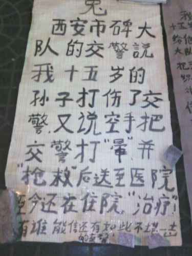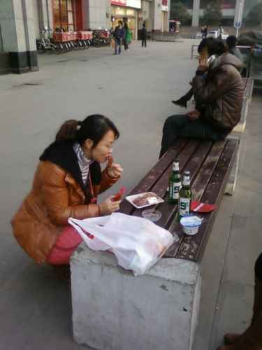 มีอาผอแก่ ๆ เขียนป้ายบรรยายความลำบากเพื่อขอเงินด้วย ในจีนนั้น ขอทานมีให้พบเห็นน้อยมาก น้อยจริง ๆ ประเภทเดินตามเพื่อขอเงินนั้น ไม่มีเลย ที่นั่งขออย่างนี้ ทั้งซีอานมีให้เห็นสัก สาม คนมั้ง