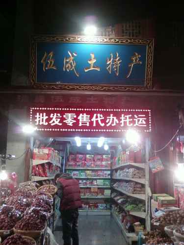 ร้านค้าสองข้างทางบนถนนคนเดินในเมืองเก่า ก็มีขายของประเภทอาหารของพวกมุสลิม ของกินแบบแห้งพวกผลไม้อบแห้งต่าง ๆ สินค้าศิลปหัตถกรรม เสื้อผ้า ของที่ระลึกแบบส่านเป่ยที่ไหงว่านั่นแหละ บรรยากาศสวยงามคลาสิคมาก จะเห็นได้ว่าป้ายร้านต่าง ๆ บางป้ายก็เป็นของเก่า บางป้ายก็ทำเลี่ยนแบบของเก่า และตัวอาคารก็เป็นศิลปของอาคารในแถบนี้ แต่ละห้องแต่ละคูหาล้วนสวยงามมาก
