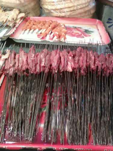อาหารที่เขามีให้เลือกซื้อทานก็ส่วนใหญ่เป็นพวกเกี้ยว หมี่ ปาว และโรตี ที่เป็นพวกแป้ง และมีเนื้อบาบีคิวย่าง หลาย ๆ อย่าง ทั้งเนื้อวัว ไก่ แพะ และของทานเล่นบางอย่าง