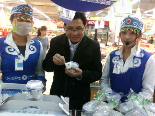 สววพีซี ขายโยเกิร์ตมองโกล ในห้างโลตัส(ของไทย) แอบให้เขาถ่ายภาพให้ โยเกิร์ตของเขาแสนอร่อยมาก ๆ อยากให้ในประเทศไทยมีแบบนี้ขายบ้าง ในไทยรสชาติของโยเกิร์ตมีแต่เปรี้ยว และผสมผลไม้ หรือพวกธัญพืช แต่ที่นี่ โยเกิร์ตของเขาเป็นโยเกิร์ต เปรี้ยวนิด ๆ หวานหน่อย ๆ มัน ๆ (คนไทยคงรับไม่ได้-โดยเฉพาะ ดร.เติ้งเสี่ยวผิง-อิอิอิ.) อยู่ในประเทศจีนเพลิดเพลินเจริญลิ้นกับการกินโยเกิร์ตมาก ๆ